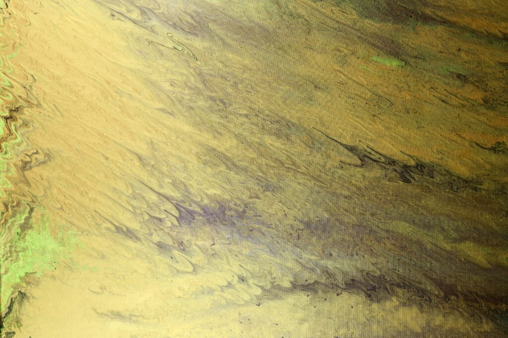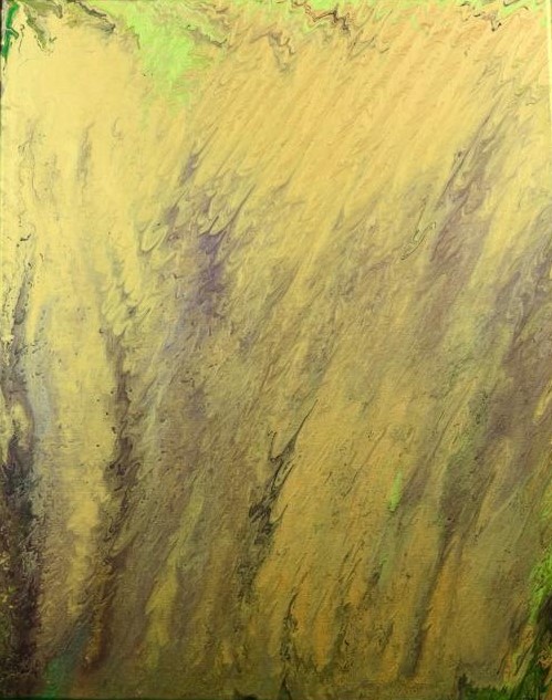 Ce tableau respire la lumière. Des nuances de jaune paille et d’ocre dominent la toile avec un mouvement ascendant qui rappelle des graminées balancées par le vent. Quelques touches de vert tendre à la base suggèrent une terre fertile s’éveillant sous un soleil de plomb.