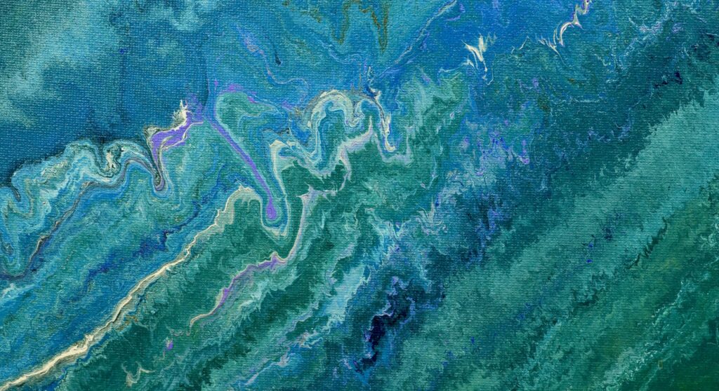 Des filaments de blanc pur et des micro-cellules irisées parcourent la surface comme des veines minérales, capturant la lumière pour simuler le scintillement de l’eau sur de la roche humide. La verticalité des coulures et la richesse des textures suggèrent un paysage géologique entre érosion et régénérescence. C’est une pièce tellurique qui invite à la contemplation, capturant l’instant précis où la force brute de la terre rencontre la délicatesse d’un mouvement fluide et organique.